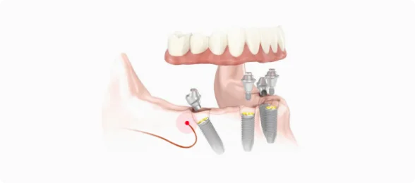 - При данном методе протезирования обходят гайморову пазуху или мандибулярный нерв, для того, чтобы удешевить стоимость протезирования и не проводить операцию по наращиванию костной ткани