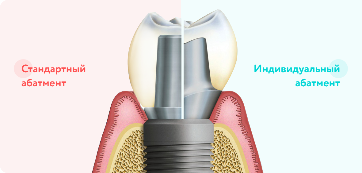 В некоторых клиниках, с целью экономии, могут практиковать установку стандартных абатментов — которые НЕ учитывают индивидуальную анатомию пациента, это приводит к снижению срока службы конструкции и при этом страдает эстетика.