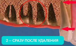 На рисунке справа видно, какие щели между зубов образуются уже через год, после удаления.